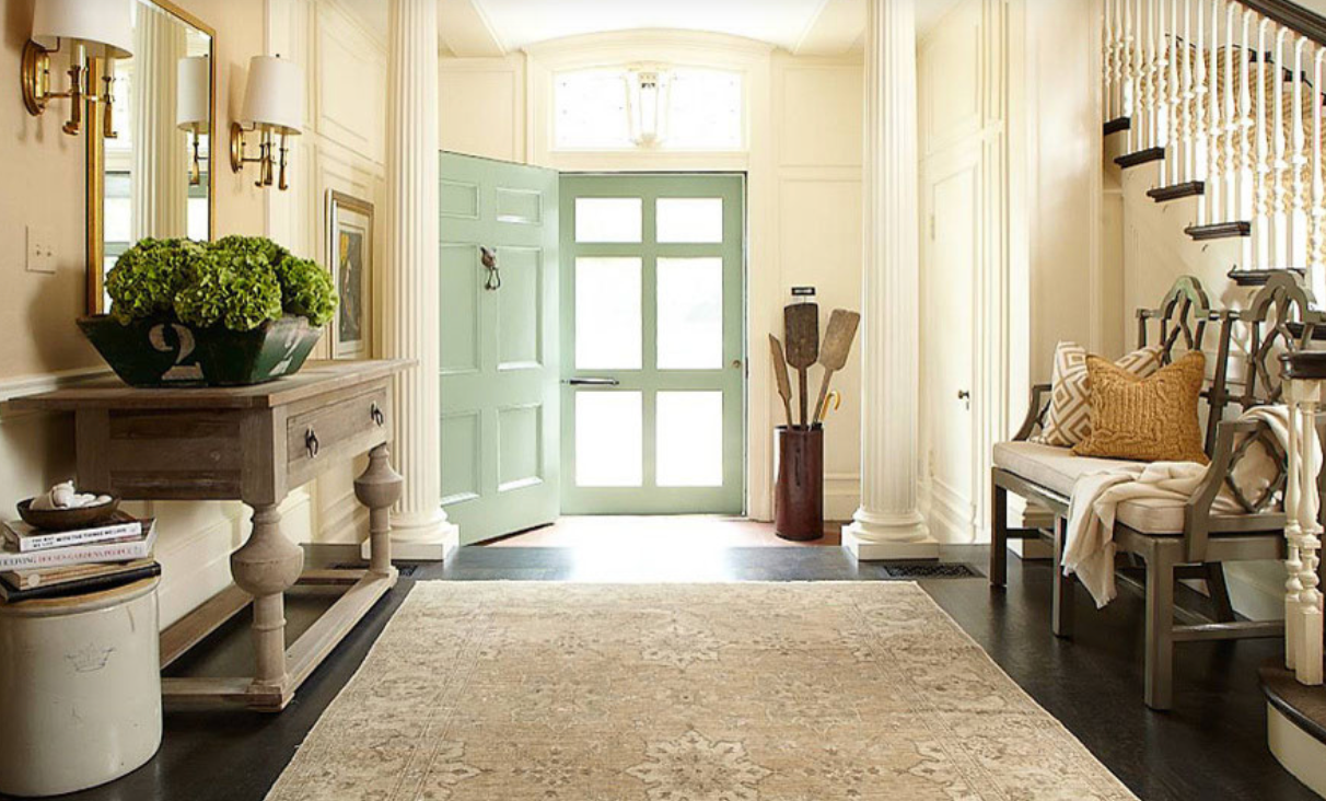 A Warm Welcoming Foyer – The foyer sets the tone for everything that follows in a home. As the first space to welcome you and your guests, it should feel warm, inviting, and thoughtfully styled. If space allows, add a soft bench to the foyer. Pair the bench with a small table topped with a lamp to create ambient lighting. Finish the look by bringing in color and texture with an area rug, which helps define the space while adding visual interest and comfort.