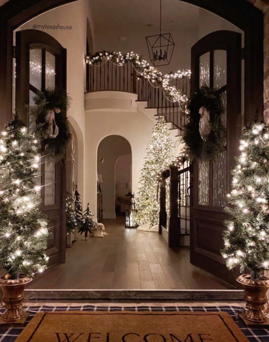 - Front Door Flourish: Greet guests with an eye-catching wreath that sets the tone for your holiday style. Go beyond the typical evergreen—experiment with bold color palettes, metallic accents, or even dried florals. Add personality with ornaments, faux berries, or fairy lights for that extra sparkle. Don’t forget the doormat; a festive design can be the perfect finishing touch.